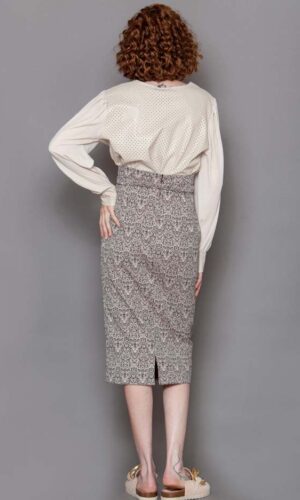 Pollera recta principe de gales, bolsillos delanteros con parche, diseño italiano.