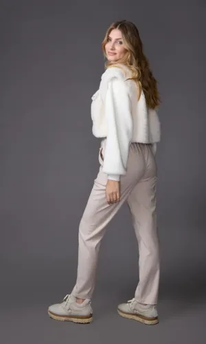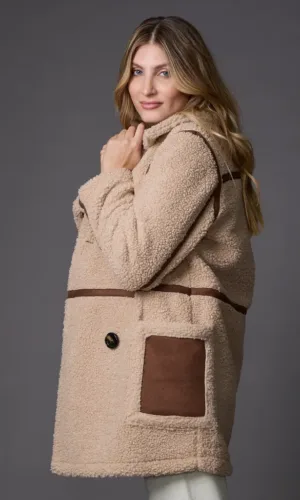 Chaqueta: Chaleco teddy cropped con detalles dorados