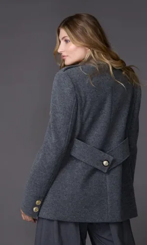 Blazer de terciopelo verde oscuro con bordado floral en lentejuelas.