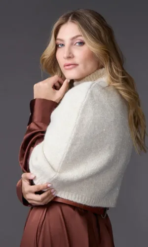 Camisa de Gasa: Una camisa blanca transparente de gasa, con mangas largas y puños anchos, aportando una capa ligera y femenina.