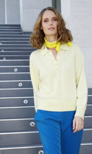 Sweater cashmere, cuello redondo hecho en USA, punto fantasía y manga larga.