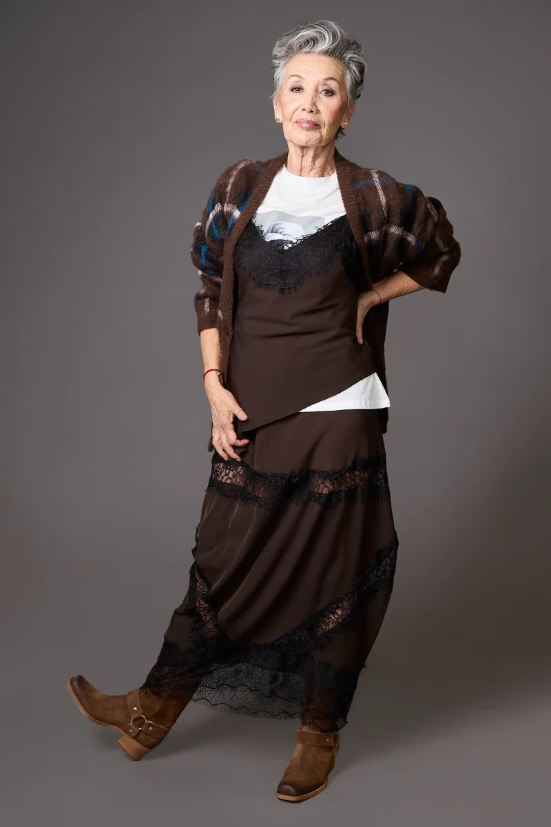 Chaleco escocés Conjunto lencero con encaje