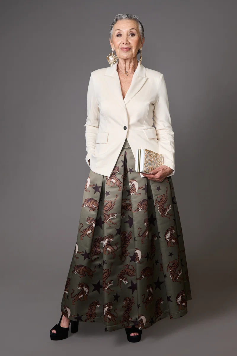 Blazer entallado en color crudo Faldón estampado savage