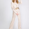 Enterito negro de lentejuelas con escote pronunciado y mangas largas con detalles de plumas.