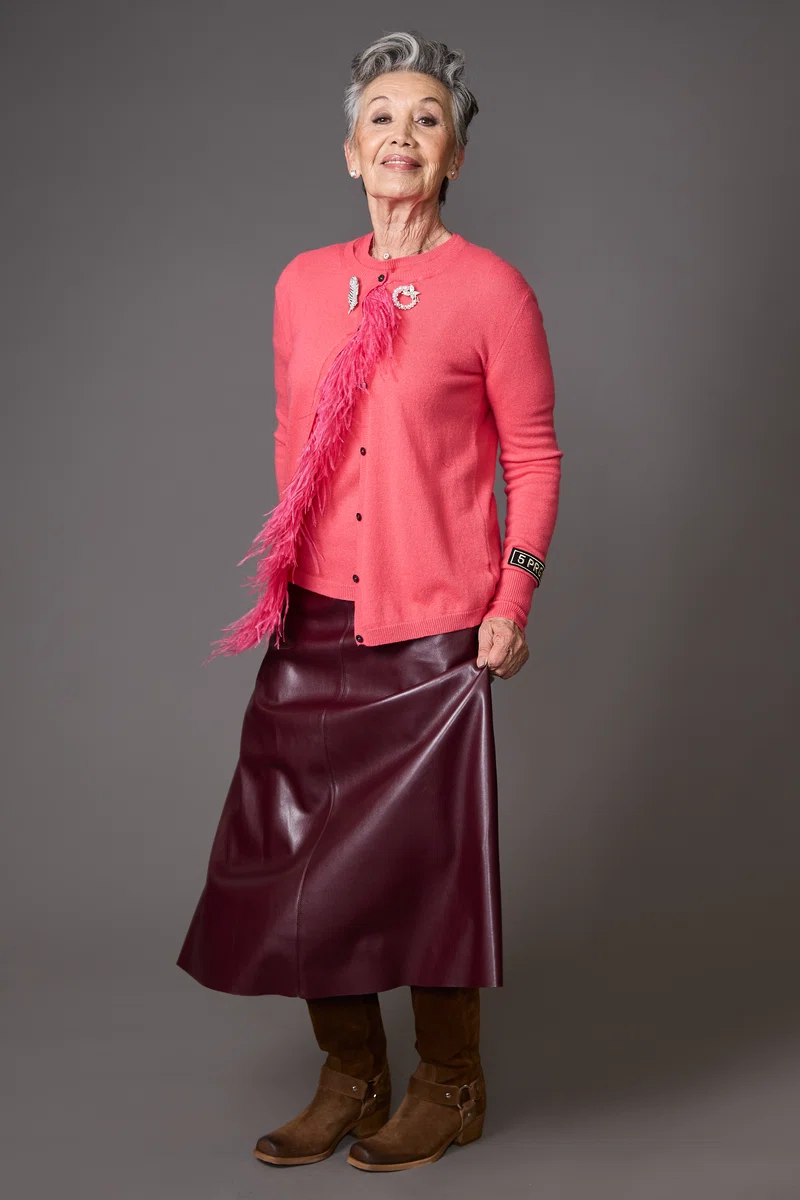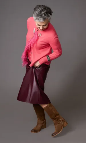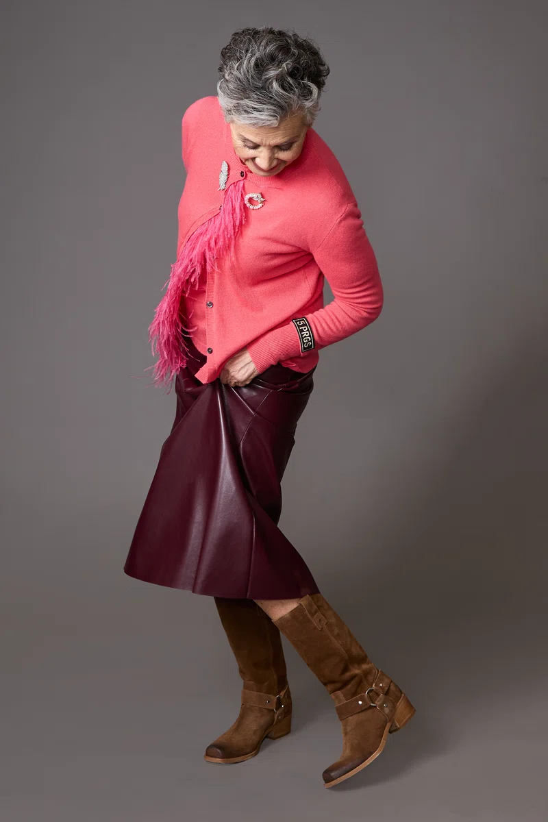 Twin set cashmere y falda midi ecocuero
