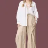 Blusa de manga larga en estampado animal print, combinada con falda beige de ojal que aporta movimiento y frescura al look, logrando un estilo boho chic sofisticado y versátil.